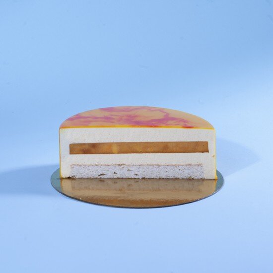 Ванильный Испанский бисквит, мусс из сливок на основе белого шоколада с маком, вишневый конфи