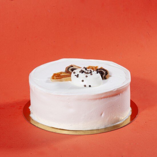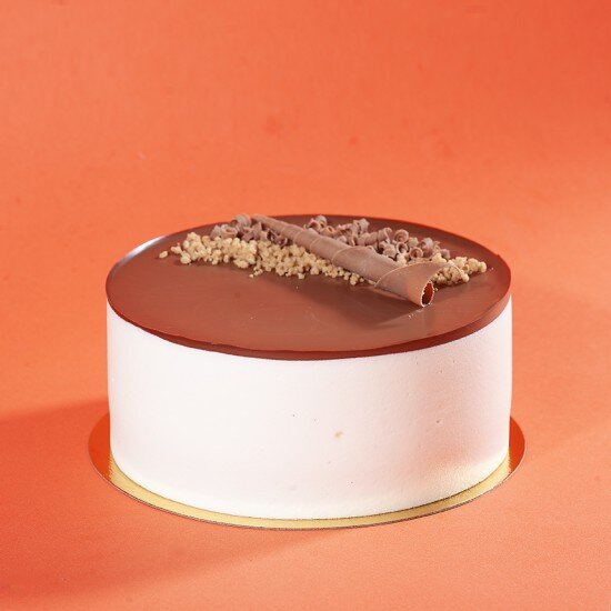 Шоколадный бисквит, сливочная карамель, хрустящее безе, карамельный крем, арахис.